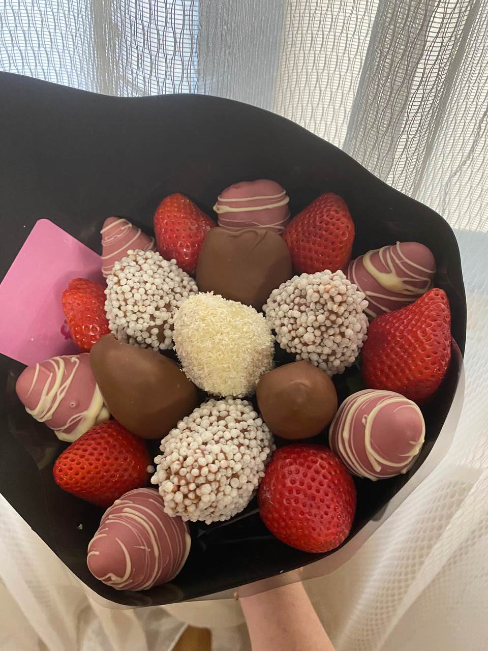 Отличная работа! 👍 Заказала дочери букет из клубники, осталась в полном восторге 😍. Сделали всё так, как попросила. Спасибо огромное! Рекомендую! 👍 🔥💕